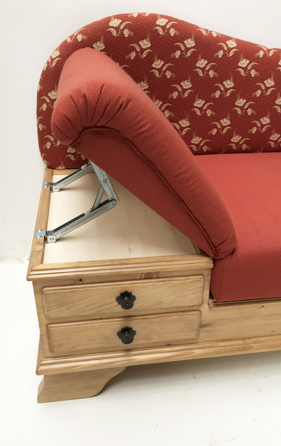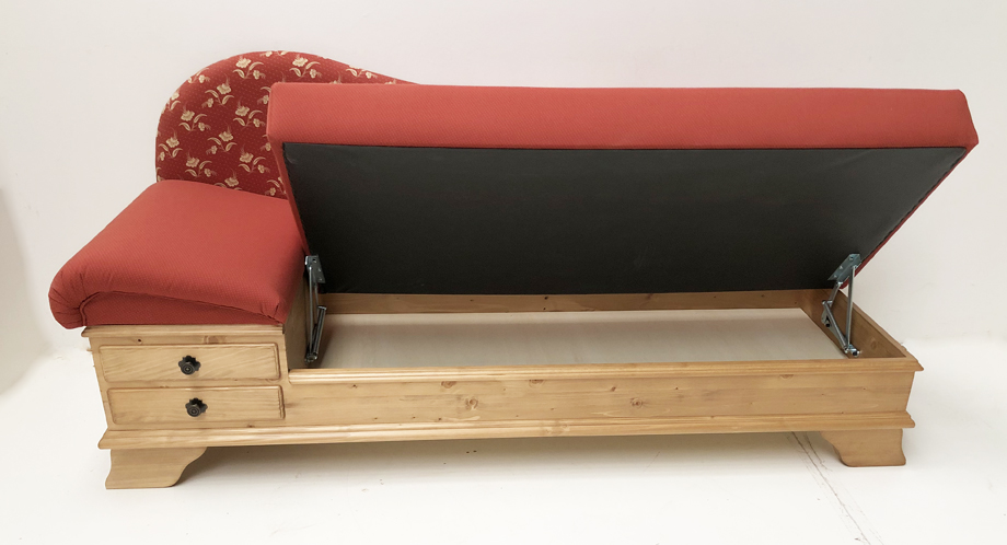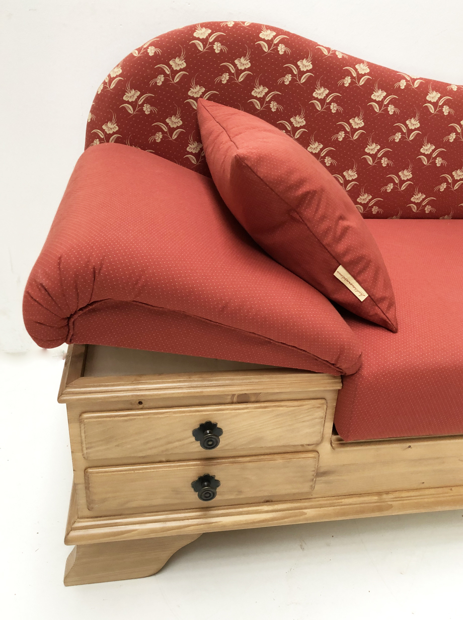 Kurzsofa Liege Chiemgau, Sonderlänge 170 cm, Kössen rot, Antik hell, Wels rot, 38 Lagerstoffen