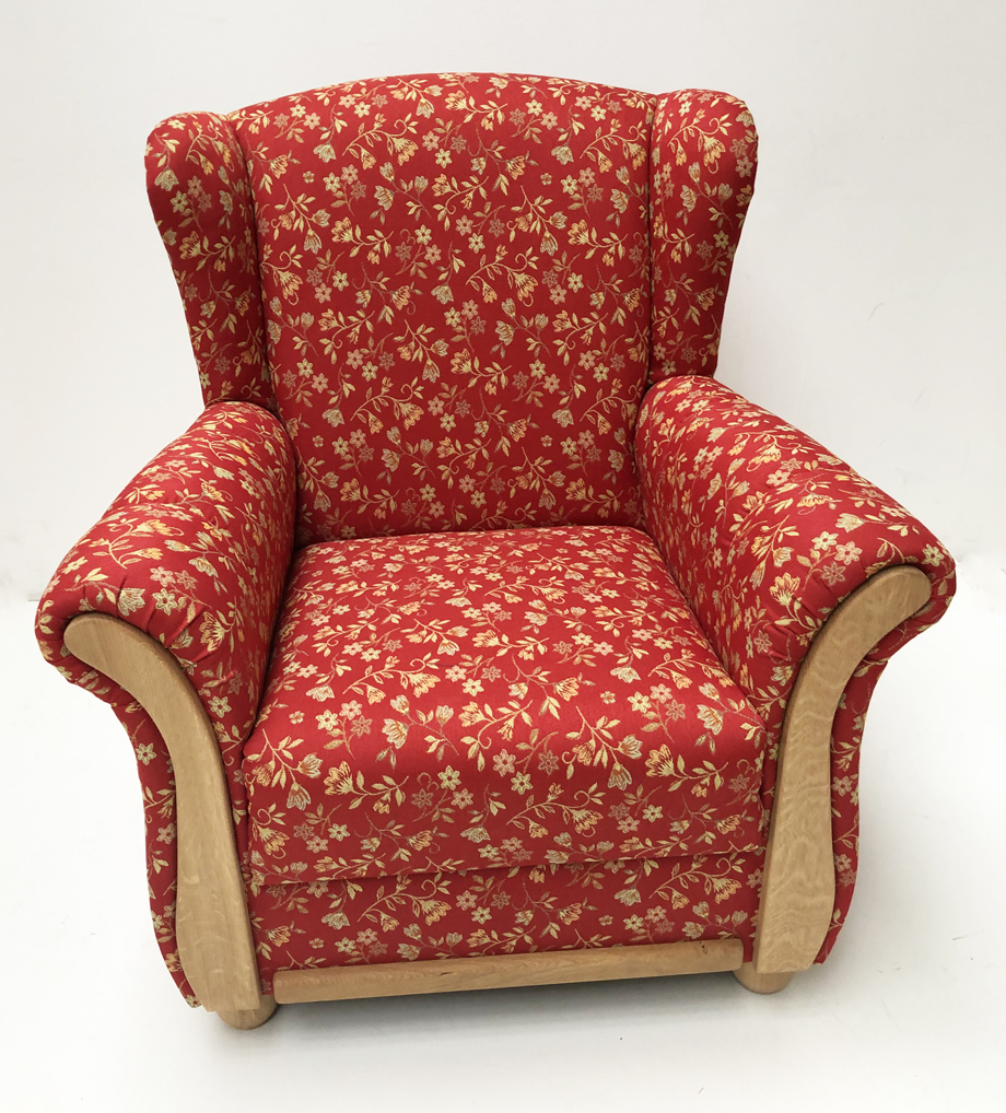 Ohrenbackensessel und Hocker LENA, Eiche , Mülheim rot
