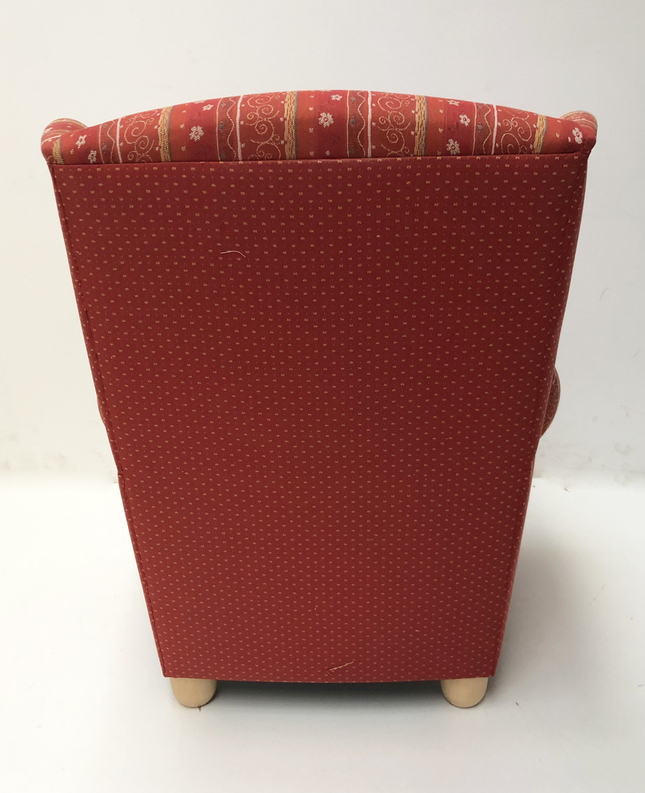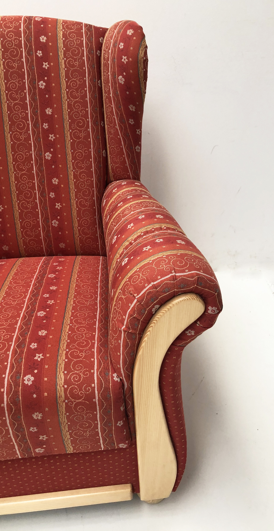 Stoff Rücken und Lehne: TS-2387, Streifen rot Kollektion Folklore. 140 cm Breite. TS 2389, 62% Polyethylen, 38% Polyacryl, 22.000 Scheuertouren, 140 cm Breite, 514 g/m², 15,5 cm Rapport