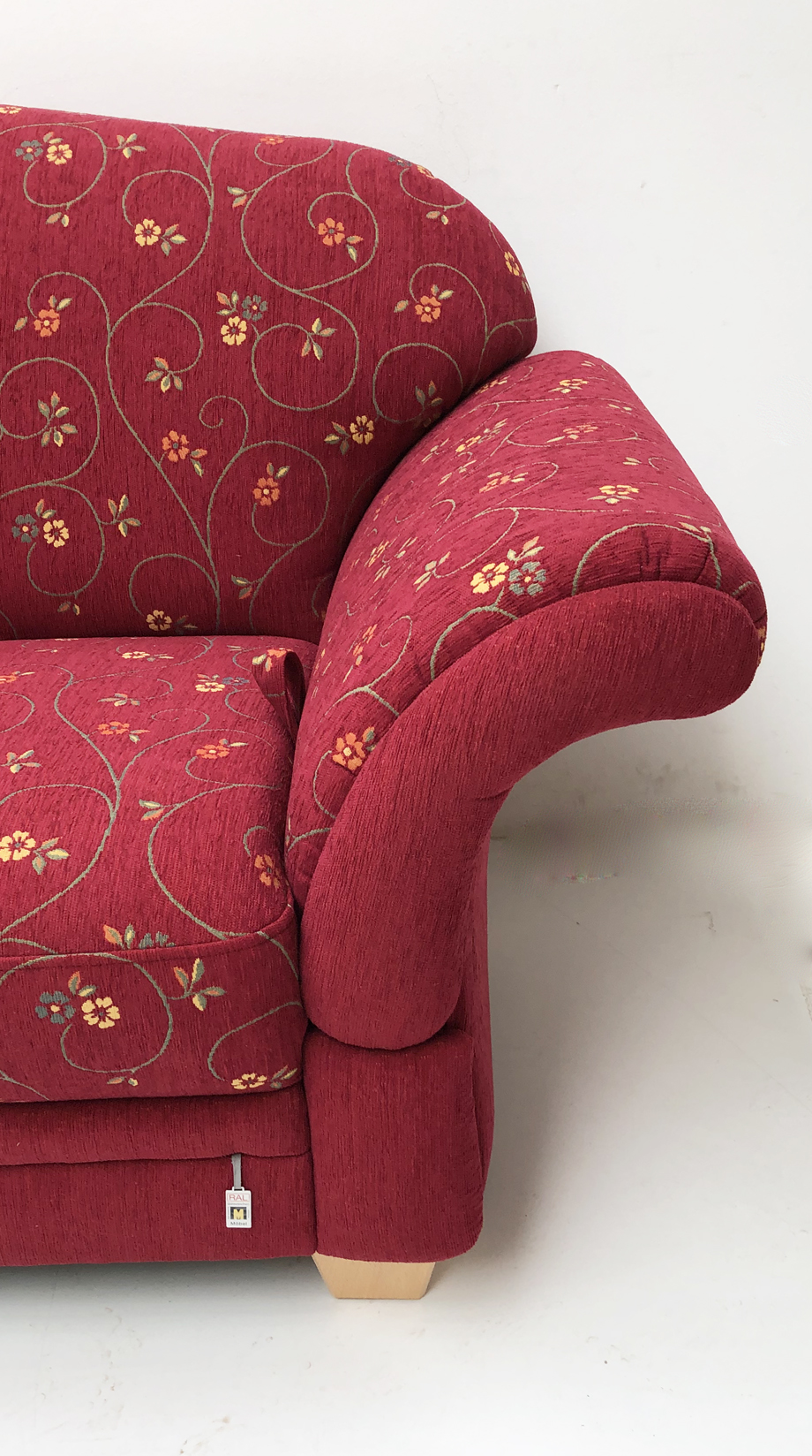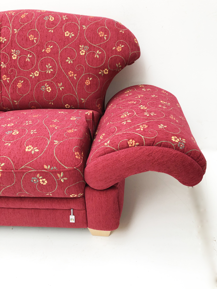 Polstersofa Wallis 344-25, 2,5-Sitzer, L= 185 cm, Stoff Pöchlarn Ranke Bordeuax 56, Pöchlarn Uni 56
