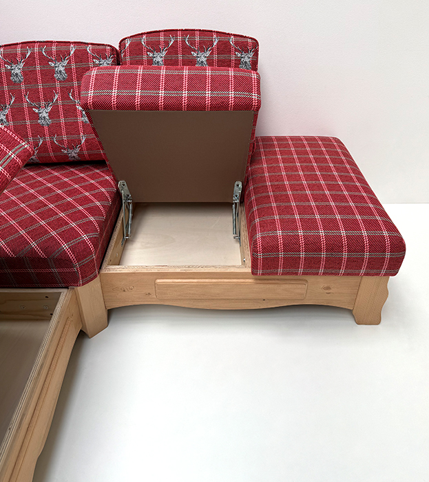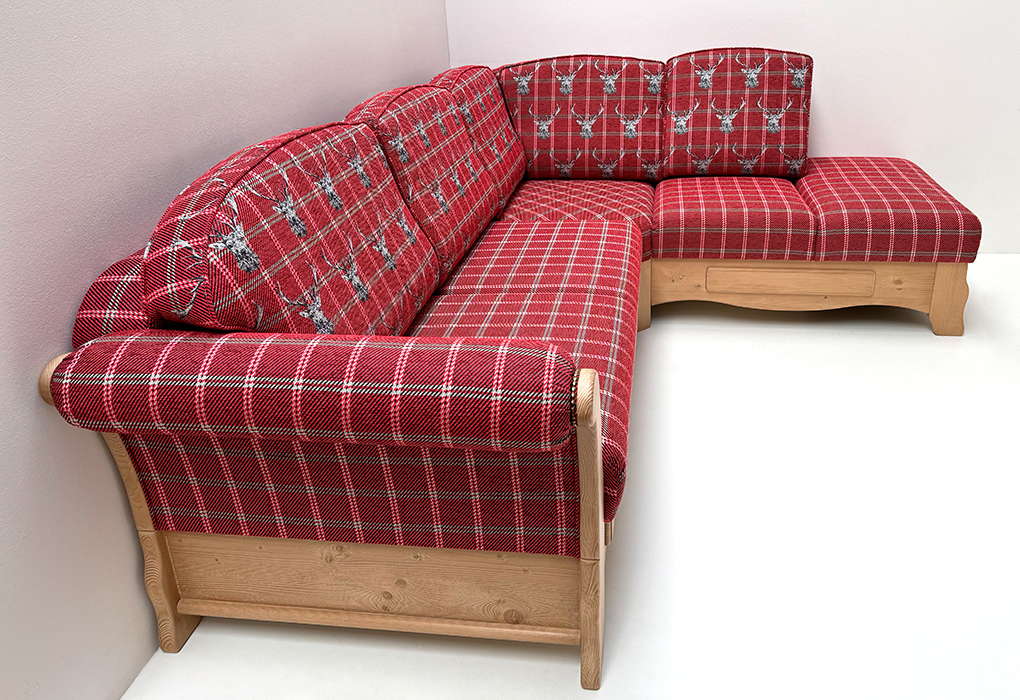 Sofa Ecksofa Sterzing, TS-6292, TS-6316, Hirsch rot, Karo rot