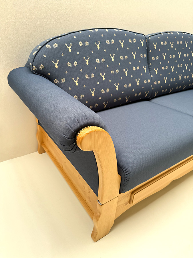 Sofa Ecksofa Sterzing, Trapezecke, Stellmaß 272/215, TS-3003 Hirsch blau, TS-3017 Uni blau