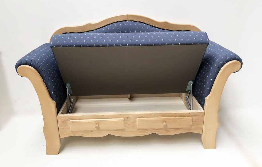 Sofa Kempten in Länge 160 (und 190 cm lieferbar !), Armlehne fest, Sitz aufklappbar