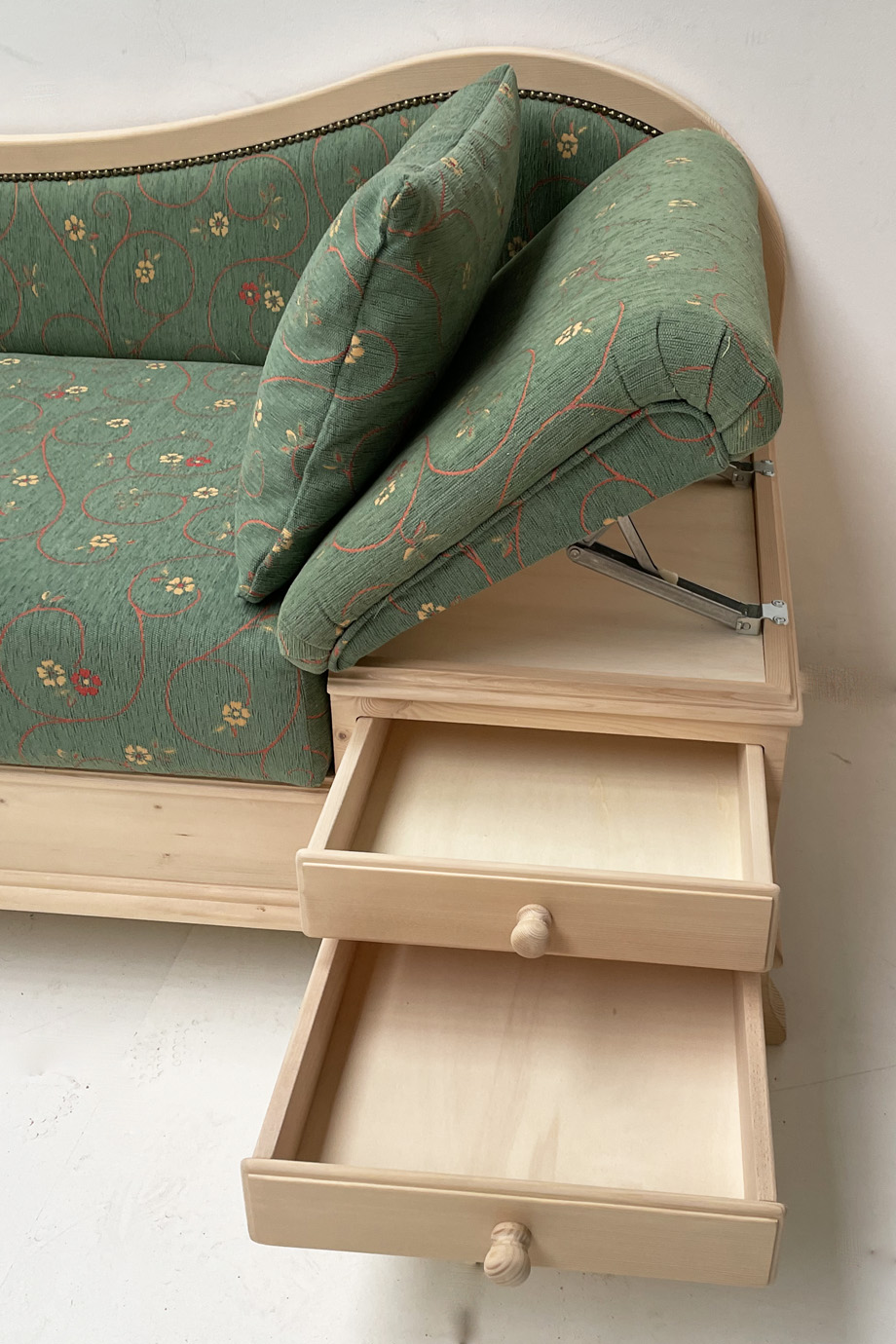 Sofa Liege Garmisch, Kopfteil rechts, Pöchlarn Ranke grün, 38 Lagerstoffe preisgleich