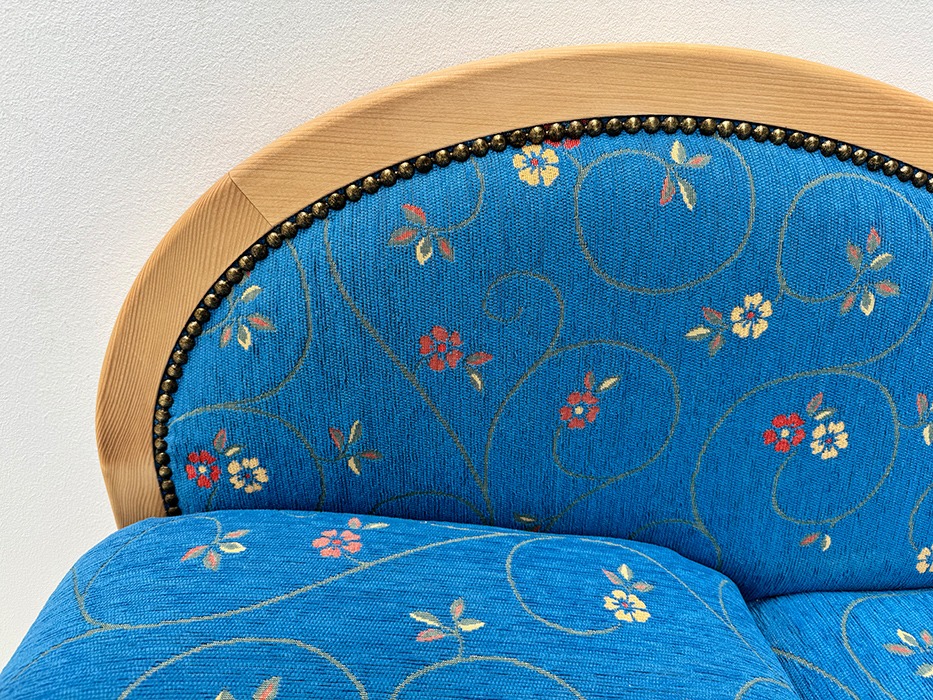 Sofa Liege Garmisch, Sonderlänge 170 cm, Rosner Hartwachs, Stoff Pöchlarn Ranke blau