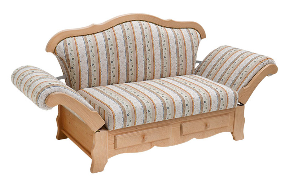 Sofa Kempten in Länge 160 cm, Sitz 110 cm, 2 Armteile abklappbar, Rücken Spannstoff