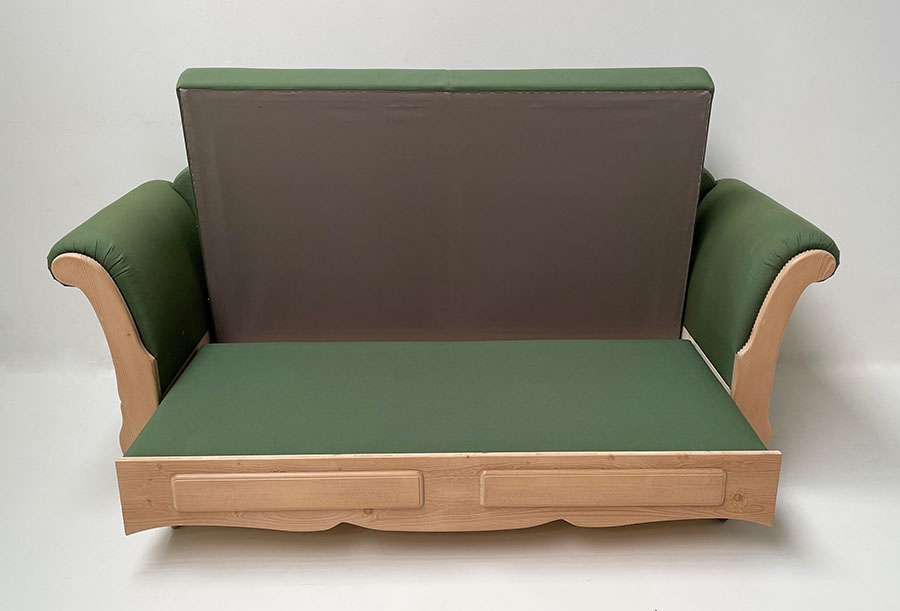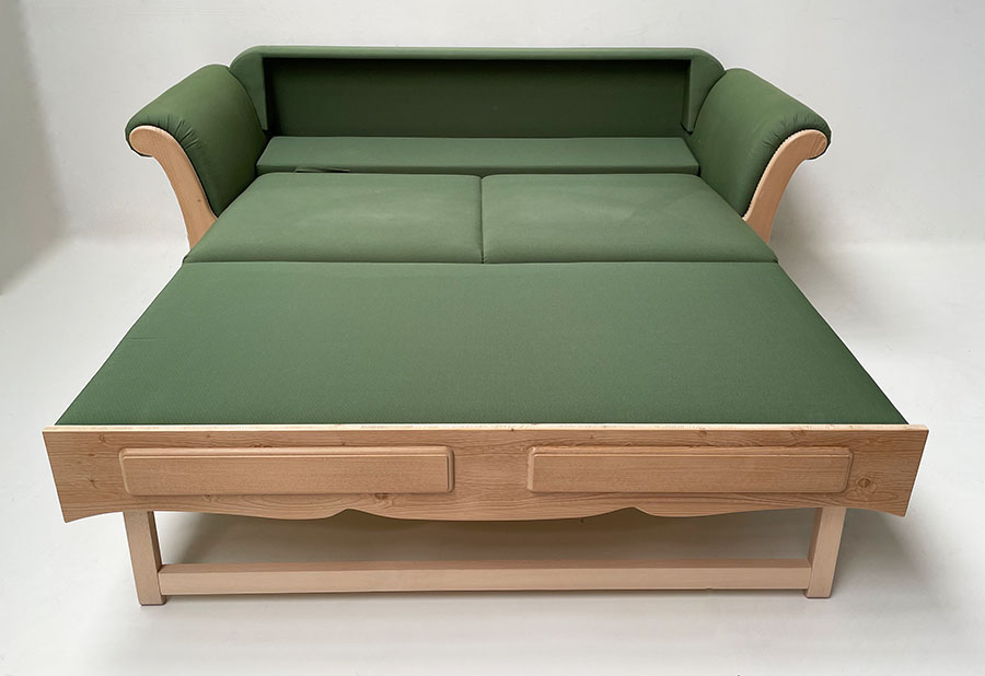 Sofa Liege Sterzing Achensee, mit Bettfunktion, Fichte, Antik hell, (Kleur1), Kundl grün, Wels grün