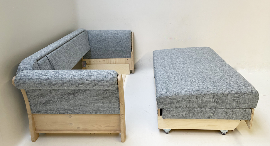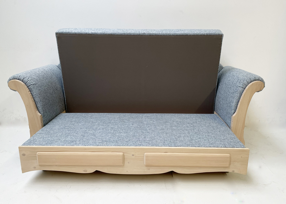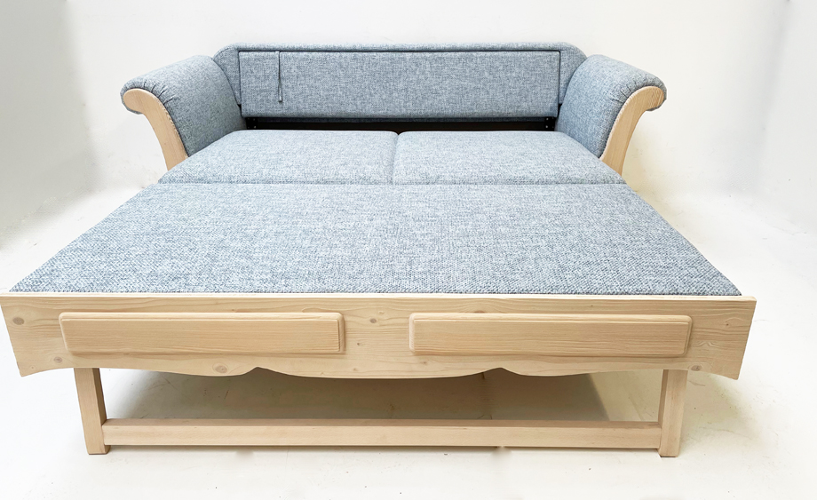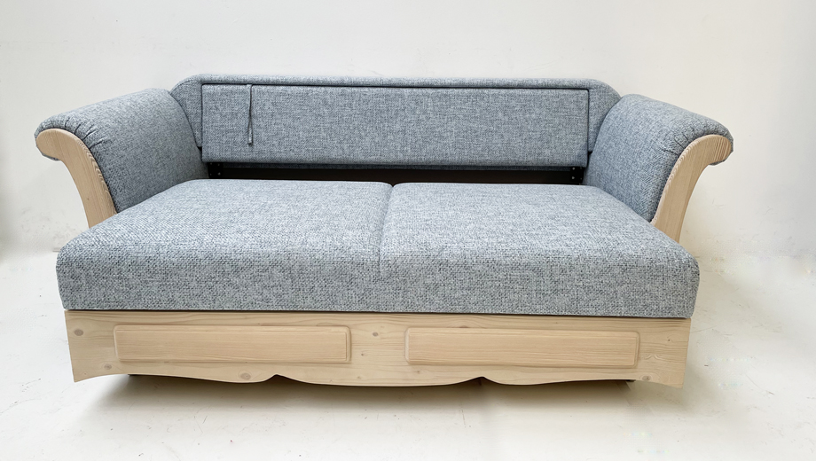 Sofa Liege Sterzing Achensee mit Bettfunktion, Holz Ficht auf alt, Glasgestrahlt, Stoff Höpke RIO804