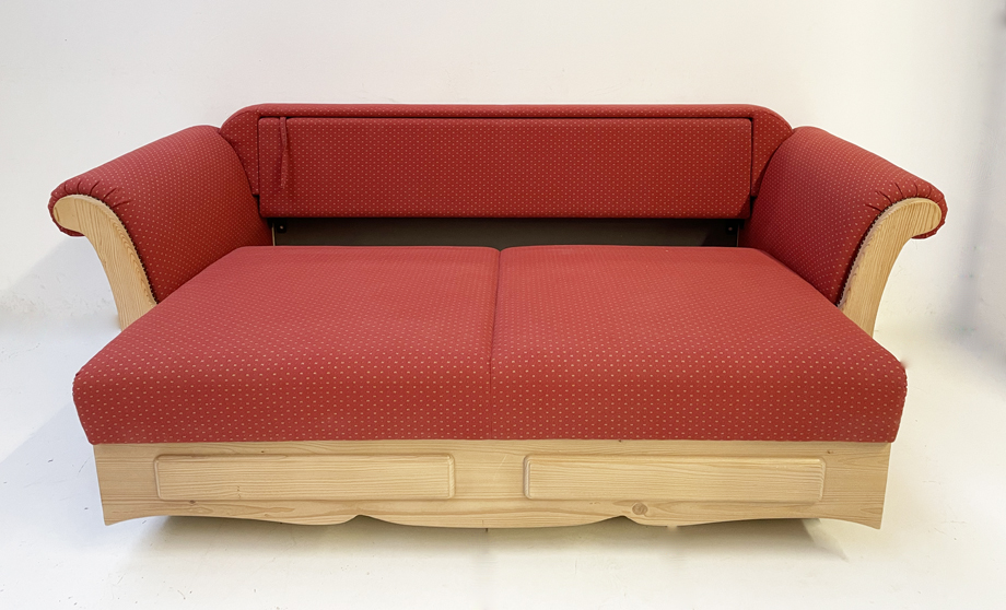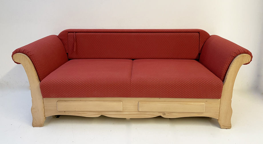 Sofa Liege Sterzing Achensee mit Bettfunktion, Holz Ficht auf alt, Glasgestrahlt, Stoff Höpke RIO804