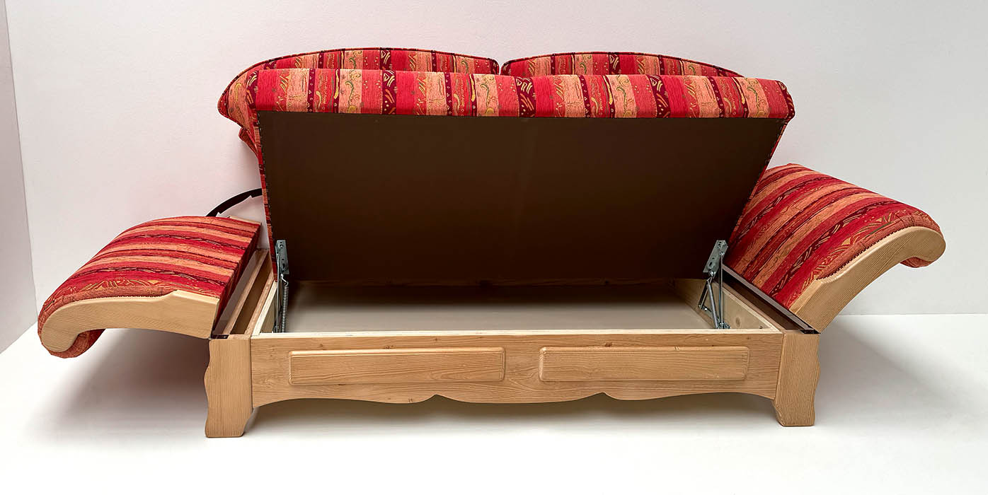 Sofa Sterzing, Sitz aufklappbar, 2 Armlehnen abklappbar , plus jeweils 35 cm Platzbedarf