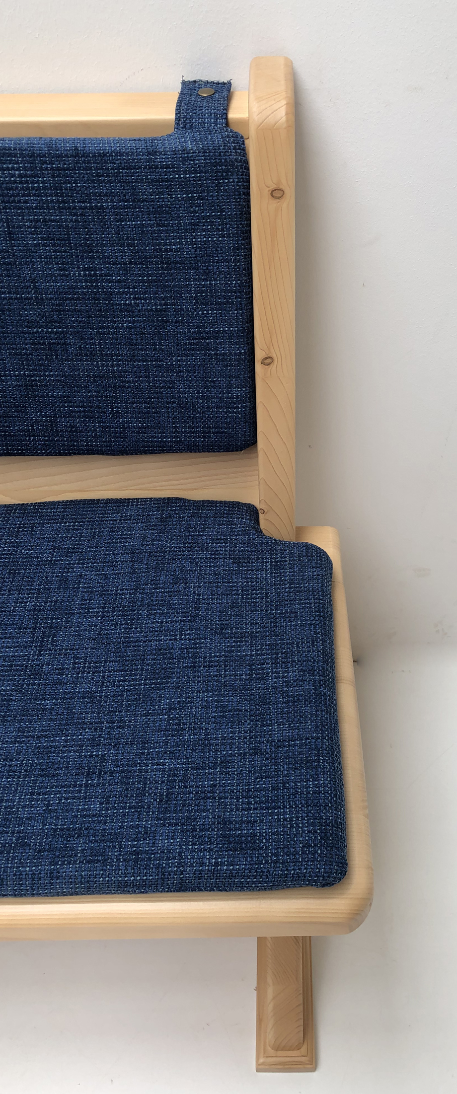 Fixieren mit Laschen und Druckknopf, Stoff Natura 813 blau, gerader Sitzabschluß, gerader Seitenabschluß, Truhen beidseits,