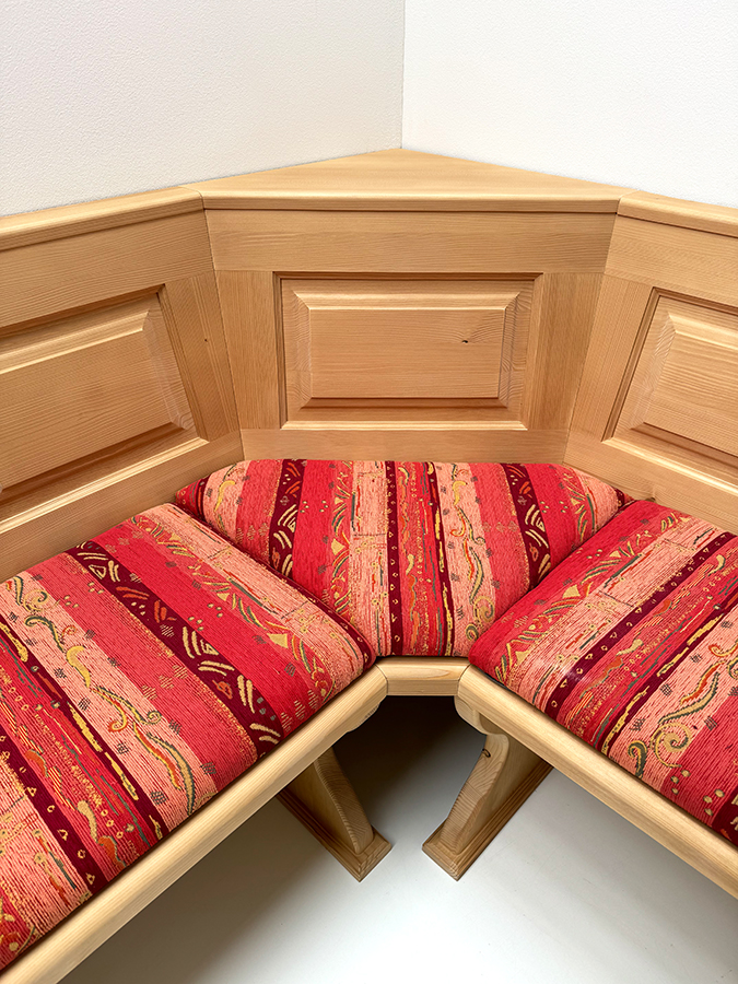 1 Eckbank im Schenkelmaß 195/195 cm, mit Truhen, Aussenwangen glatt