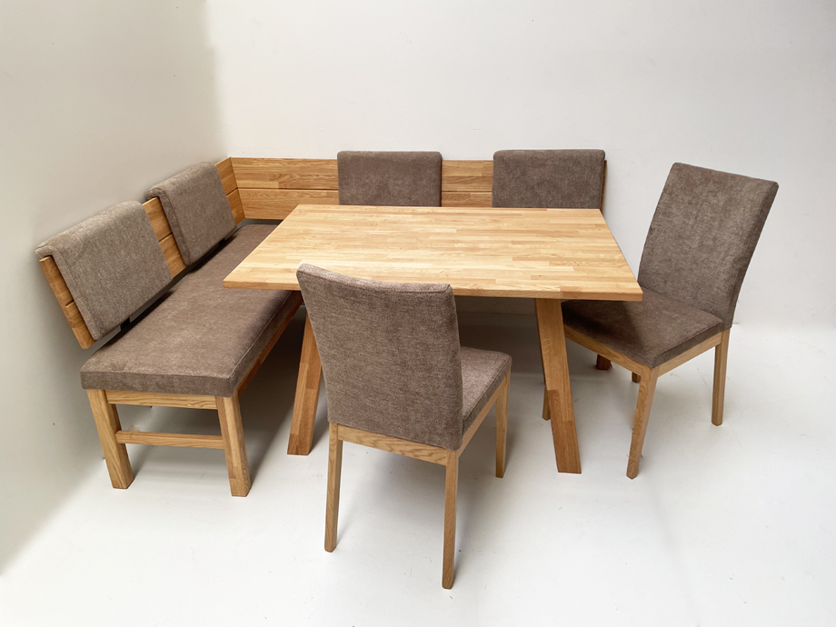 Eckbank Baumbank Oviedo Sondermaß !! 140/200 cm Wildeiche massiv, Polster genäht, Natura 804 braun