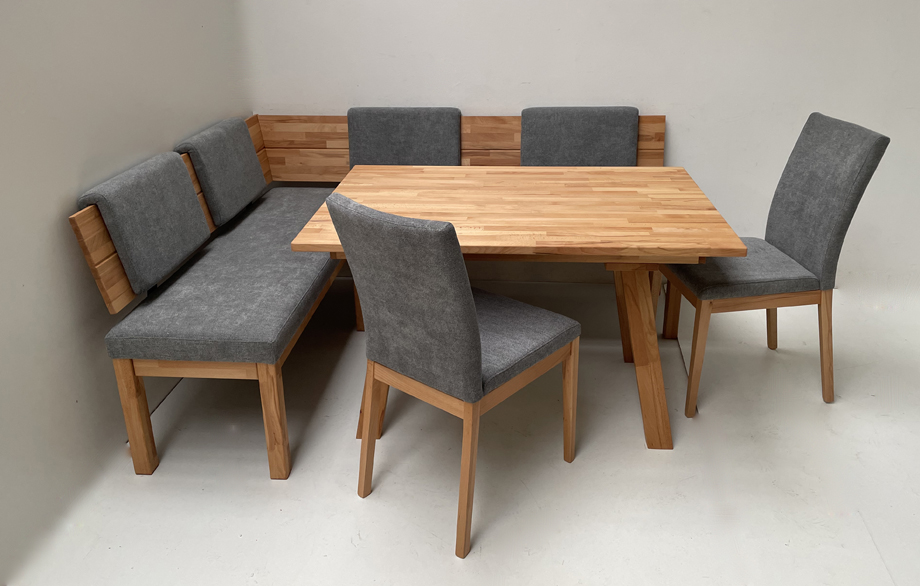 Eckbank Baumbank Oviedo Sondermaß !! 140/200 cm Wildeiche massiv, Polster genäht, Natura 804 braun