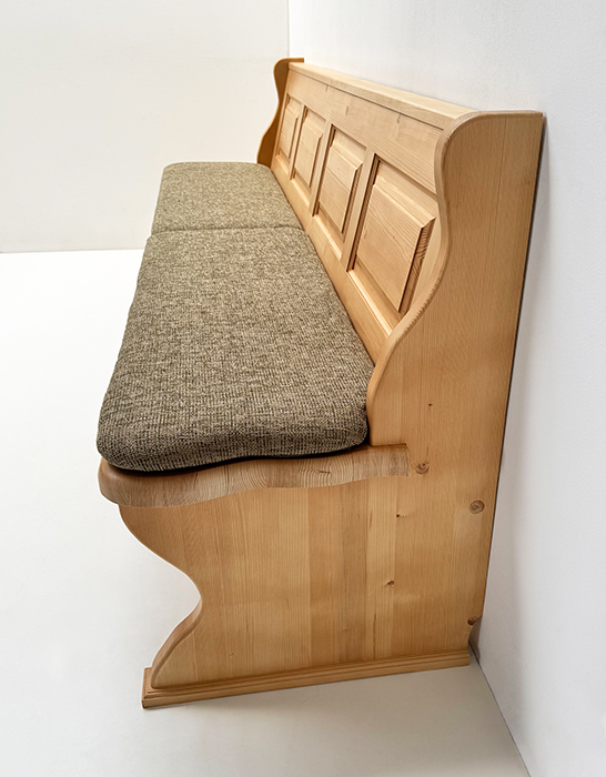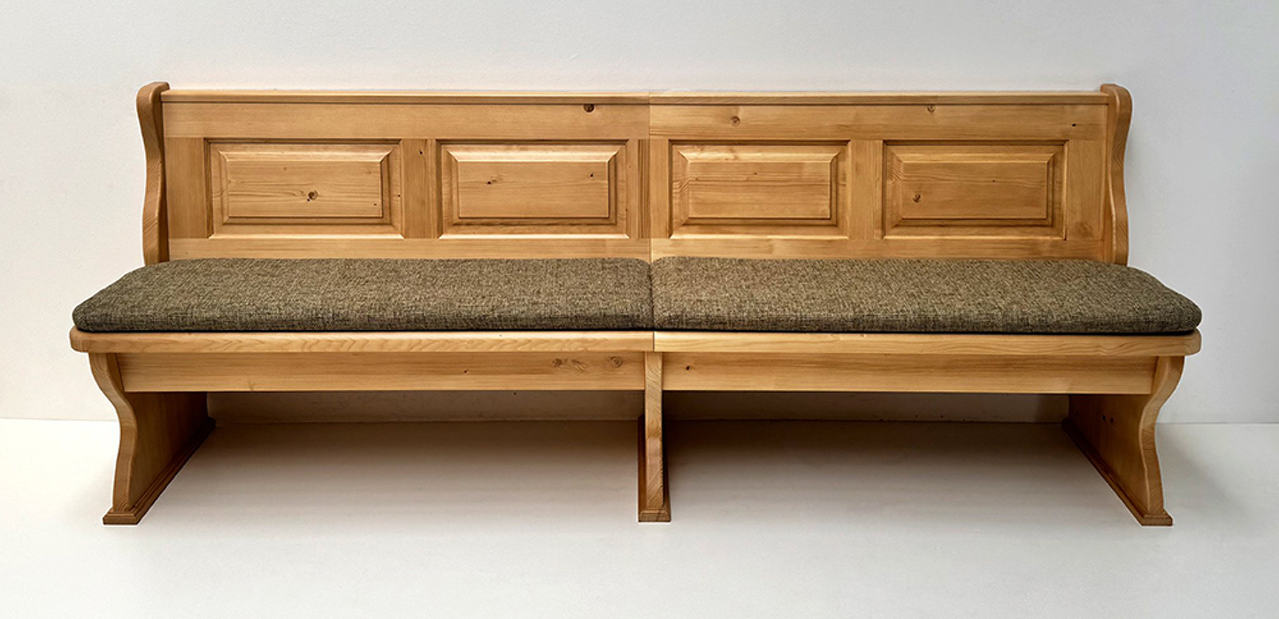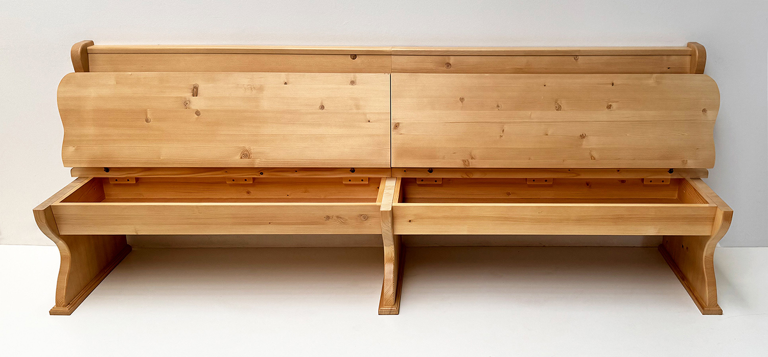Einzelbank Lindau mit 2 Truhen, Höhe Wangen 88,5 cm, Ablage 87 cm, Länge 250 cm, starker Sitz und starke Wangen 4 cm , Aussenwangen gerillt