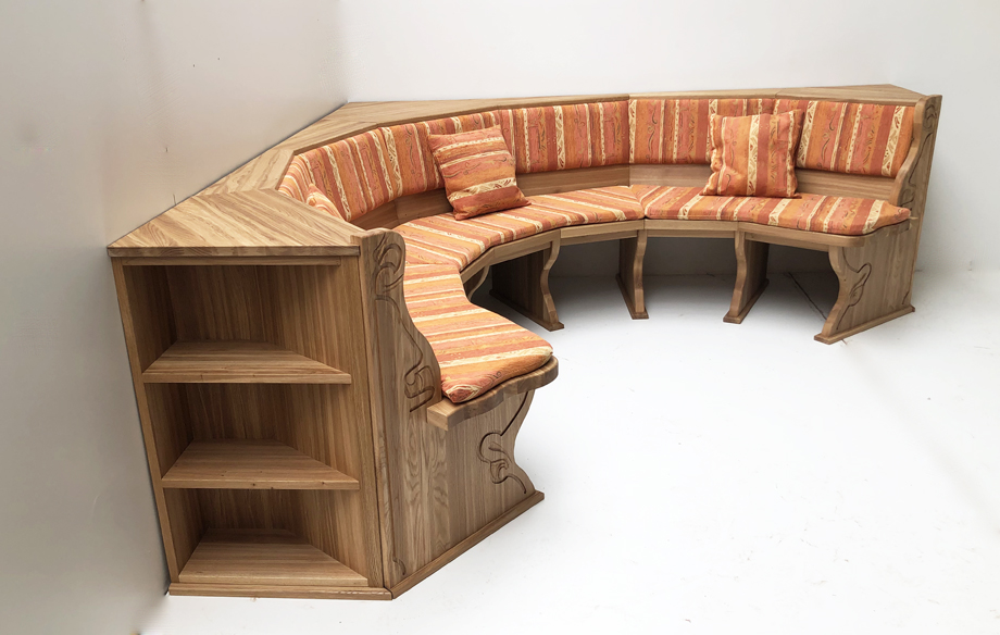 Rundbank Typ D, Schenkelmaß: 2430 x 24300 mm Massivsitz ! In Eiche massiv, geölt