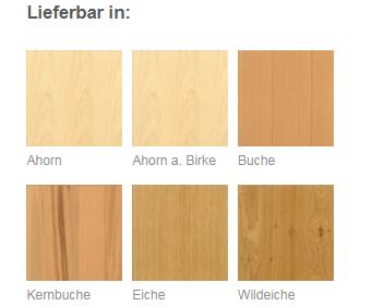 lieferbar in Ahorn, Ahorn auf Birke, Buche, Kernbuche, Eiche und Wildeiche,