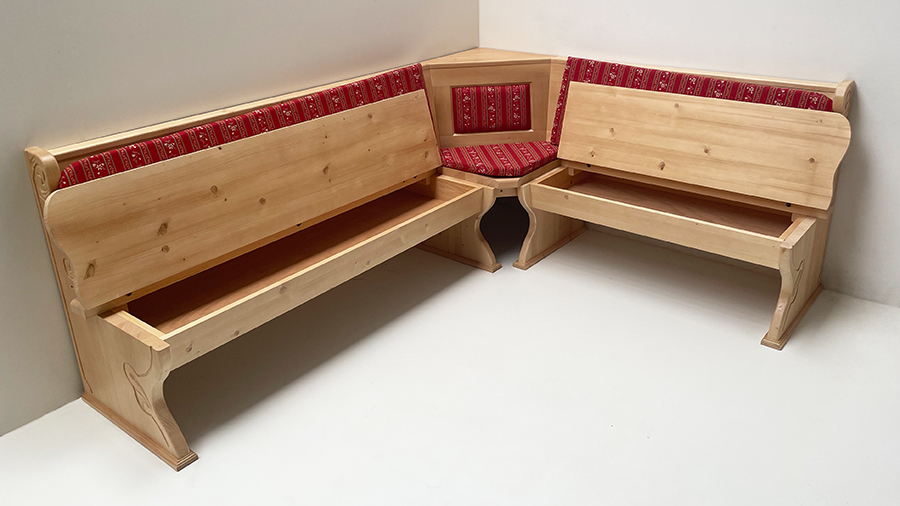 Eckbank Extra mit extra tiefe Truhen, Außenwangen geschnitzt