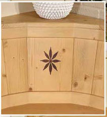 Rundecke, mit Intarsien Applikation, Fichte massiv, gewachst