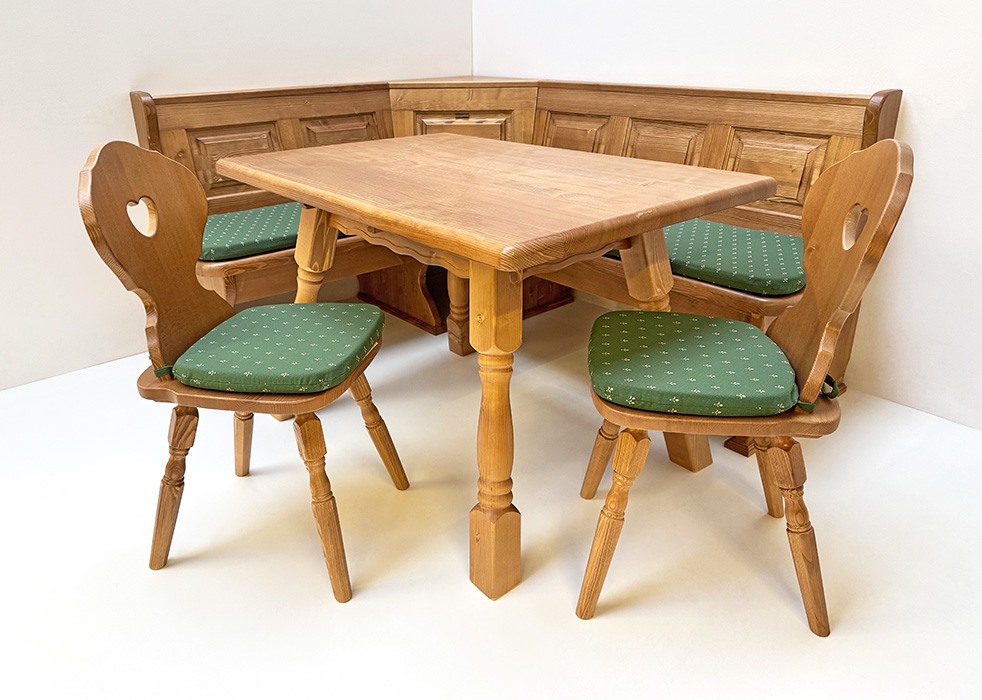 Eckbankgruppe LINDAU 150/185 Fichte, Tisch 4510-Amberg, Bauernstuhl Munich, Armlehnstuhl Munich