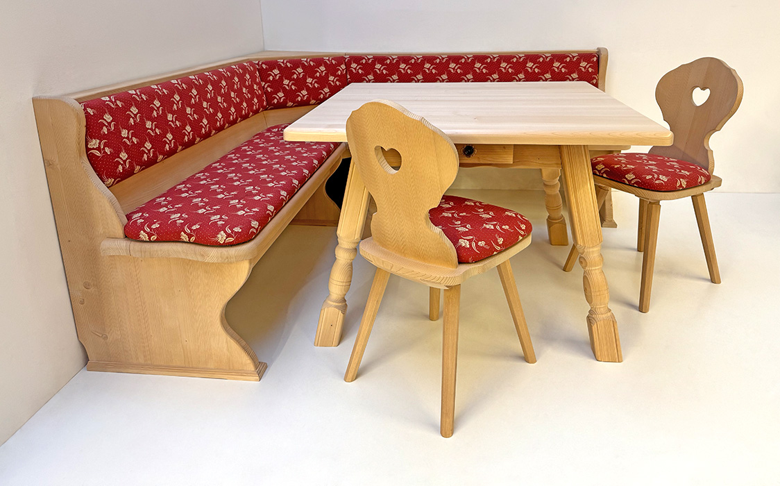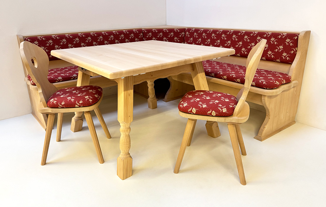 Eckbankgruppe LINDAU 140/180, Vollpolster, Tisch 4510-Amberg, Armlehnstuhl Vienna gedrechselt Kössen