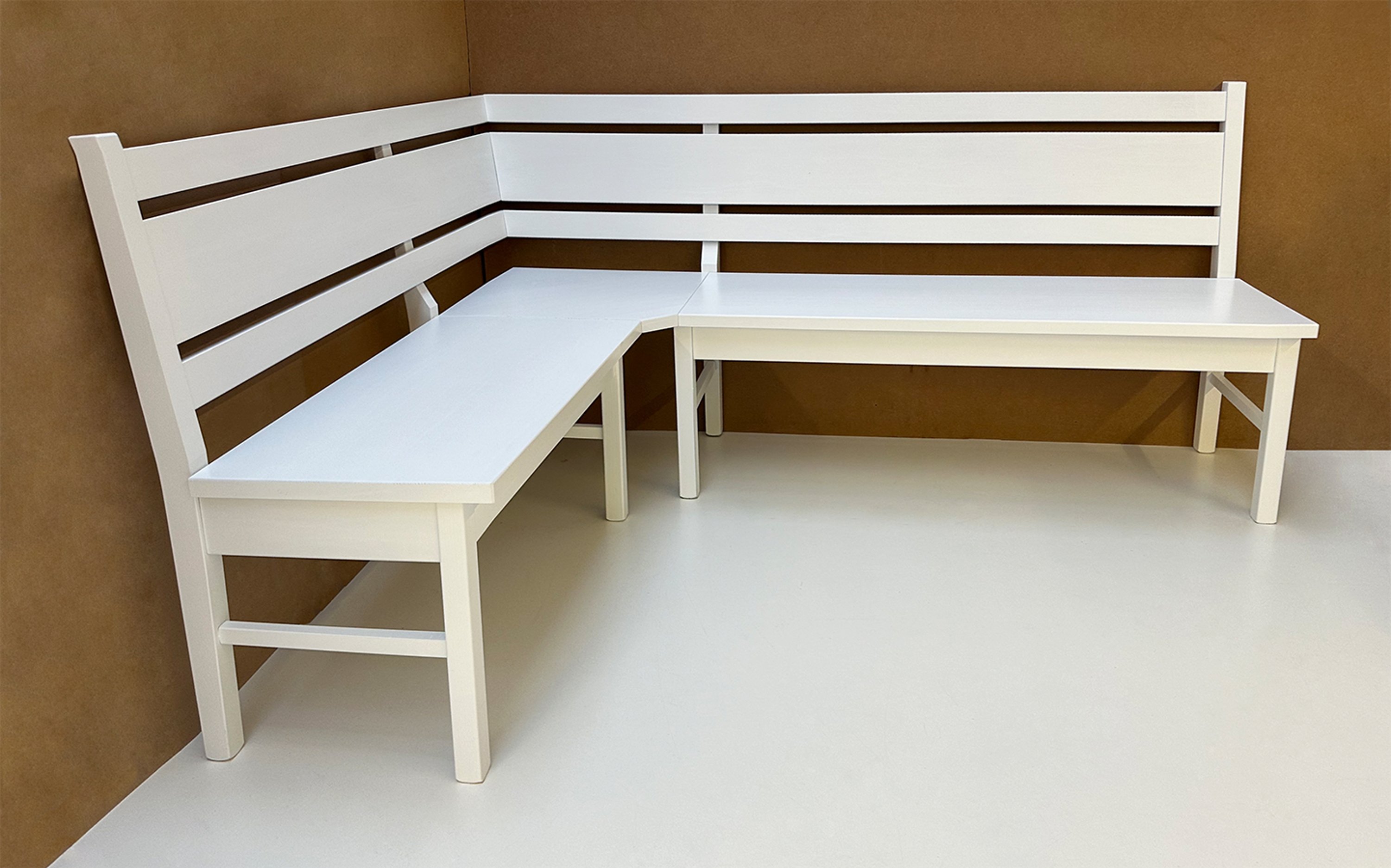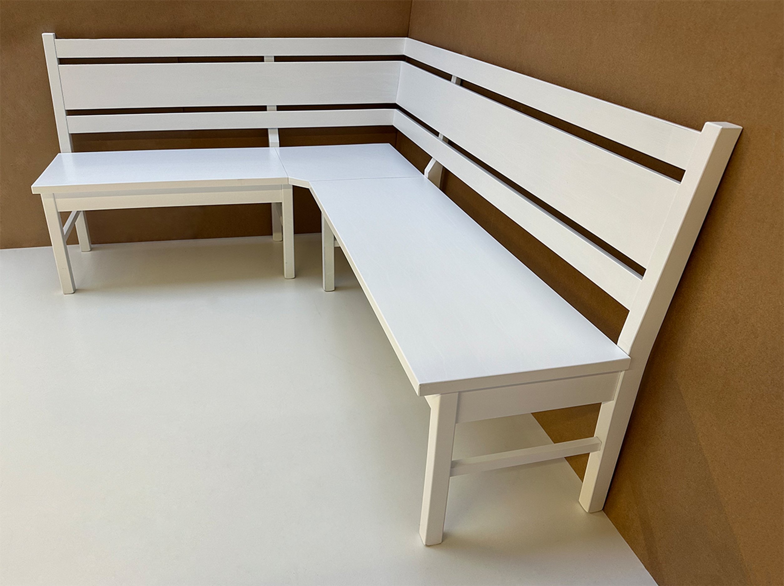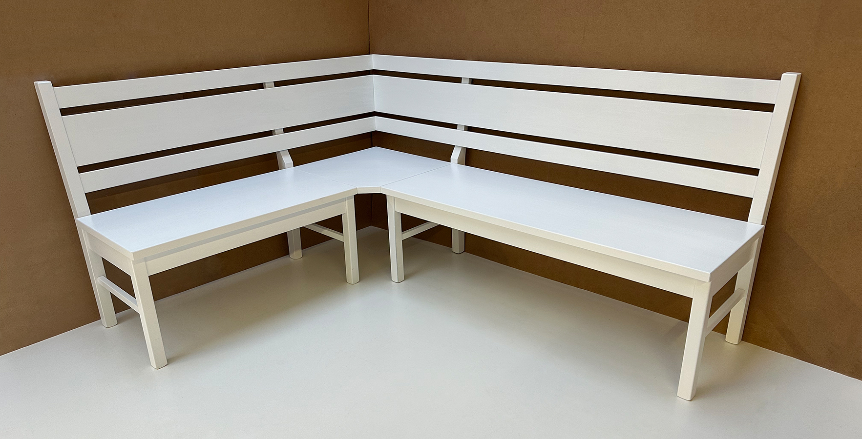 Eckbank Brühl, Schenkelmaß 150/190 cm, mit schlichtem Rücken waagrechte Sprossen, Spitzecke wie Modell ISEO