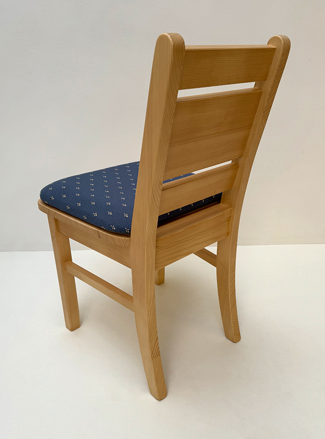 Sprossenstuhl Brühl I, Fichte massiv, Querstreben, Rosner lackiert, Polsterplatte Kundl blau