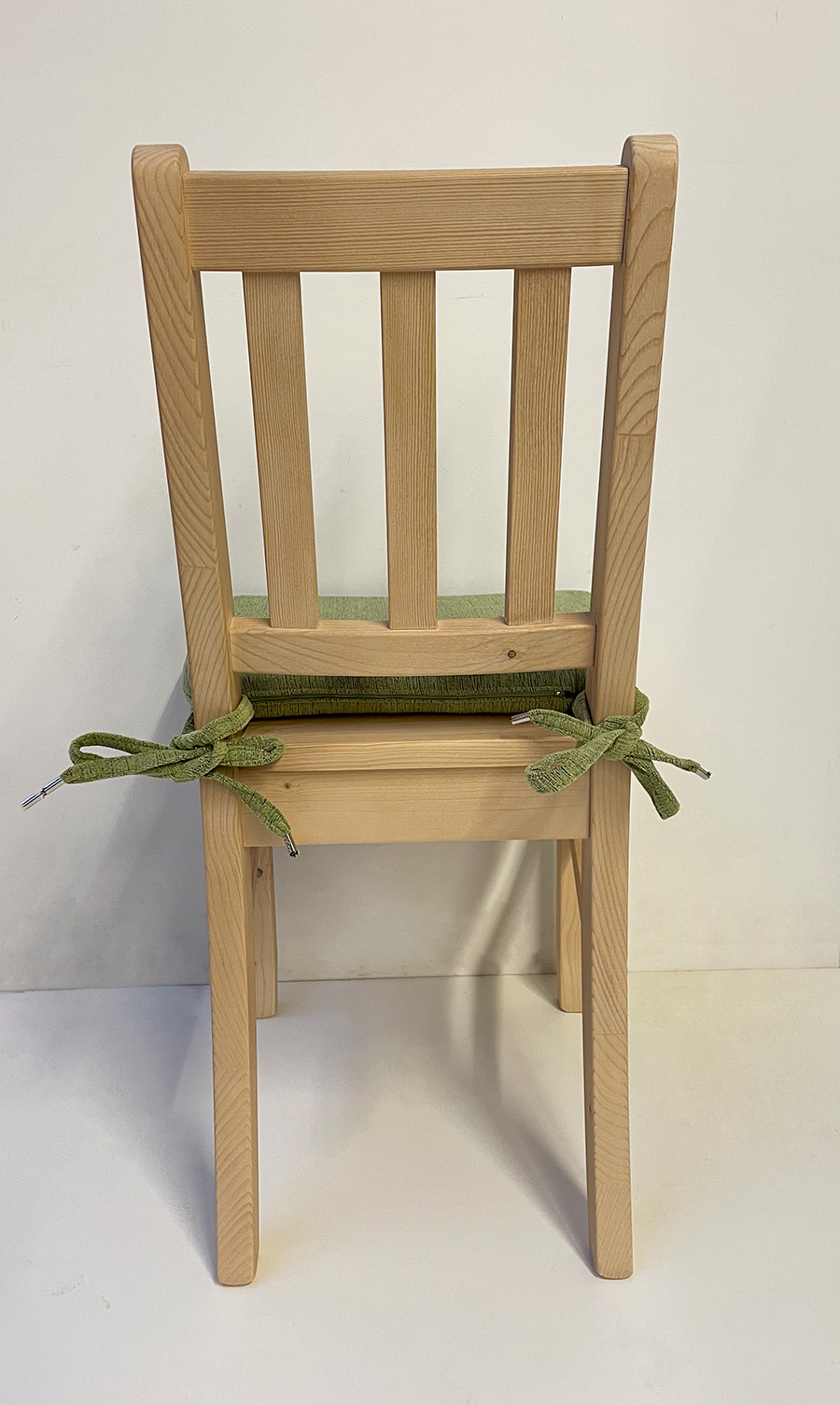 Sprossenstuhl Nürnberg Brühl mit 3 Langsprossen, Fichte massiv, Polster genäht, Landshut grün