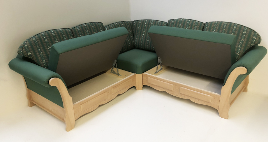 Stoffeinteilung: Kissen TS-1669 Streifen grün, Sitze Korpuss, TS-1675 Punkt grün