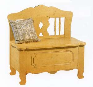 Truhenbank Einzelbank Füssen, Polster Folklore TS-2389 blau