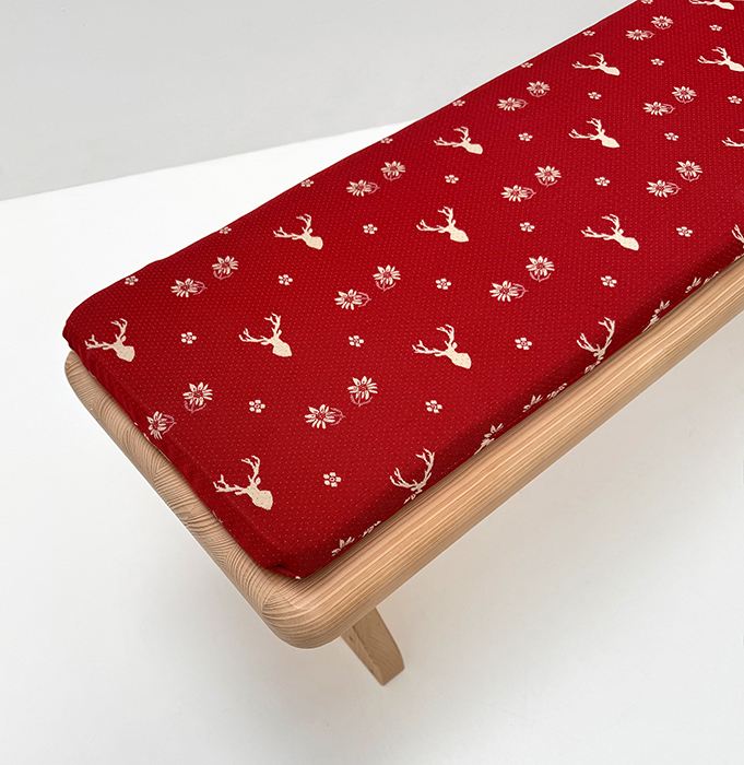 Vorbank Lindau, 140 cm, Polster genäht, Stoff Landleben TS-3001 Hirsch rot
