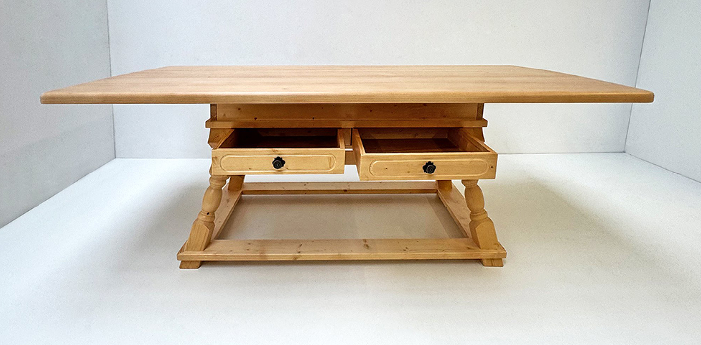 Landhausmöbel Jogltisch Lindau mit 2 Schubladen, Abmessung:110/220 cm mit Fichteplatte 4 cm stark