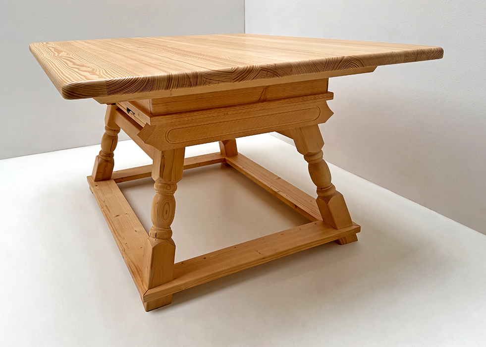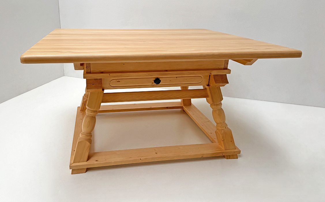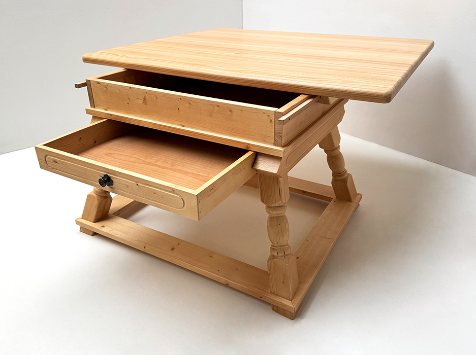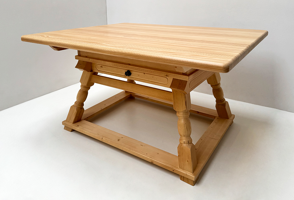 Landhausmöbel Jogltisch mit 1 Schubladen, Fichteplatte 4 cm , Rosner gebeizt und lackiert