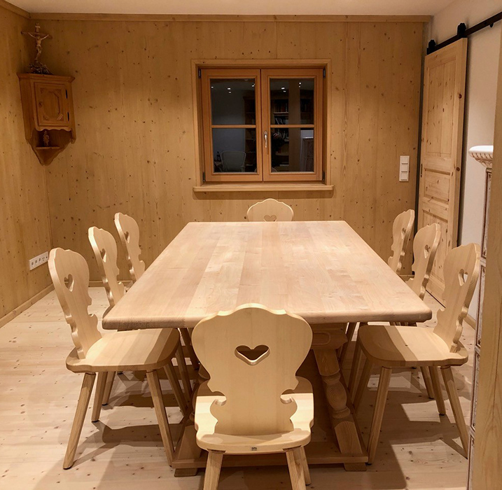Landhausmöbel Jogltisch Sondermaß 120/200 cm Fichteplatte, Rosner gewachst