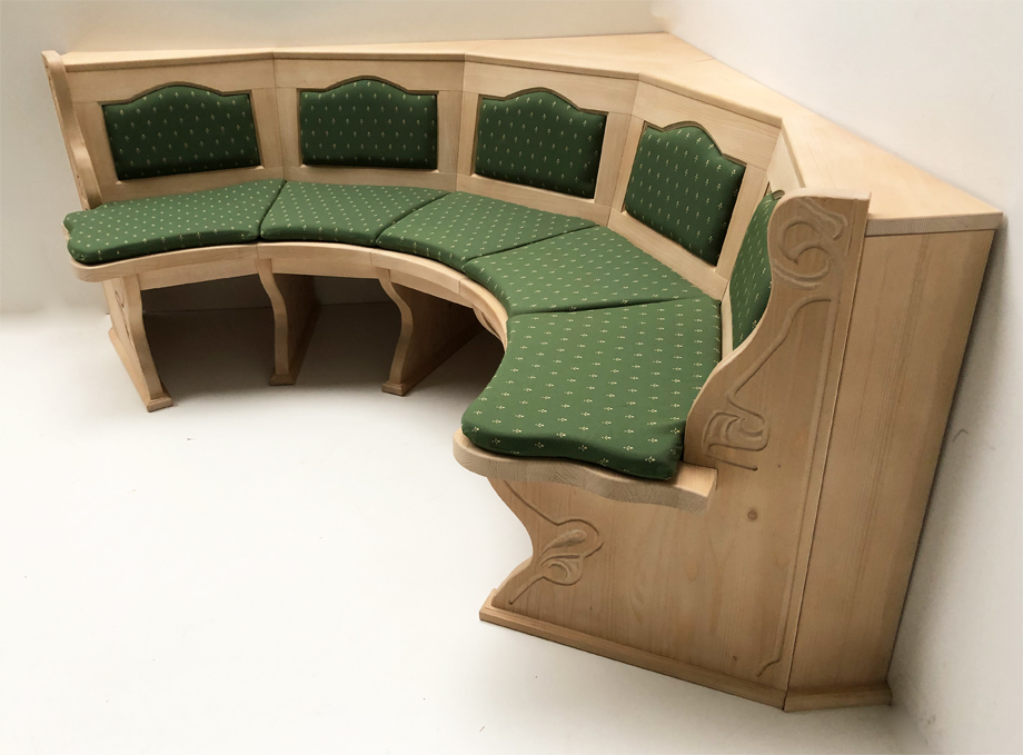 Rundbank Lindau Fichte, Typ B, Schenkelmaß 184/184 cm, Rosner gewachst, für Rundtisch Durchmesser 110 cm