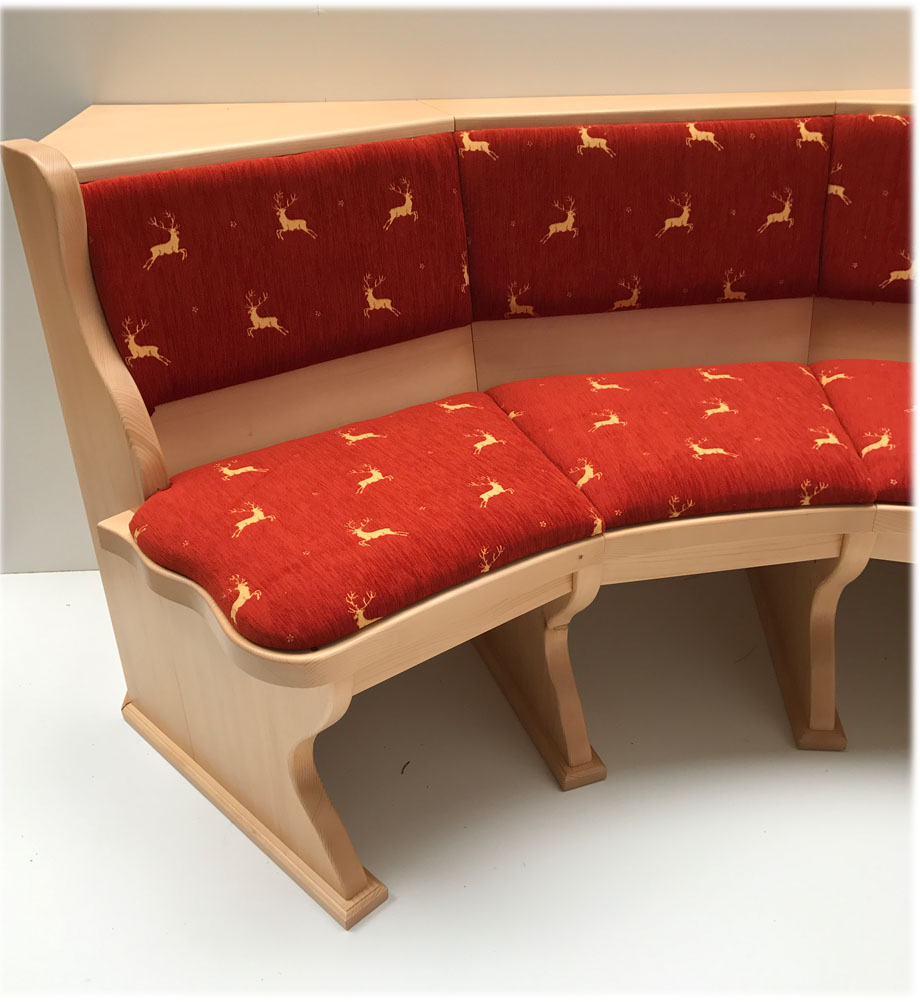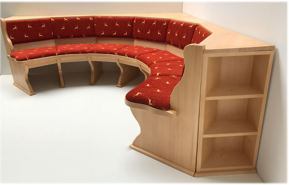 Rundbank Typ D, für Rundtisch Durchmesser 13000mm, Schenkelmaß: 2430 x 24300 mm Massivsitz ! In Fichte Rosner lackiert