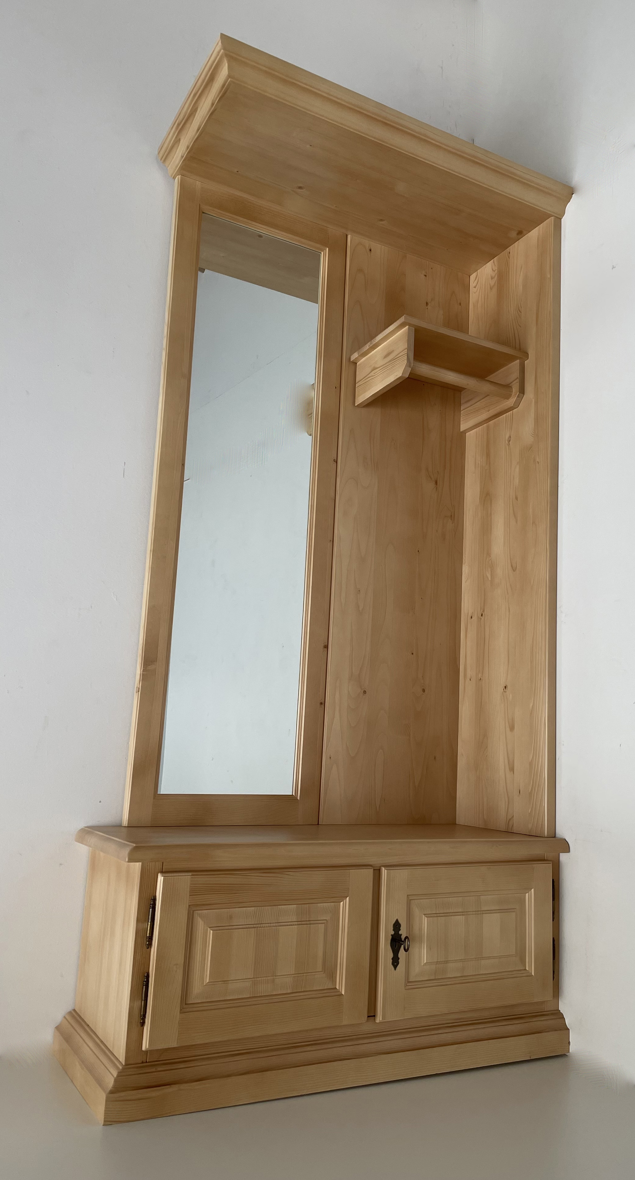 Spiegel gerahmt, Hutablage mit Garderobenstange Holz, Haken nach Bedarf