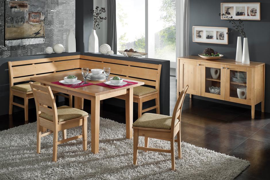 Eckbankgruppe Iseo Fichte, Bank 200/180 cm, Tisch 95/125 cm, 2 Stühle