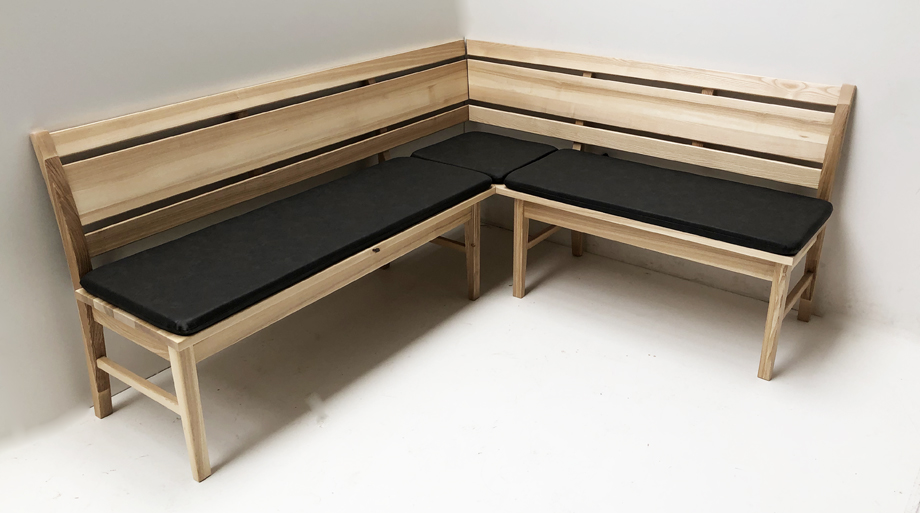 1 Eckbank, Mod. Iseo 190 x 160 cm, Sitz und Lehne massiv, ohne Truhe, (Bankmaße von 130/ bis 210 cm nach Raster lieferbar)
