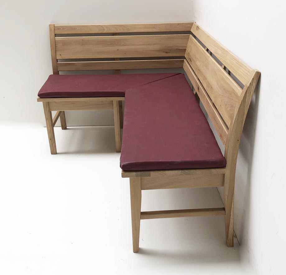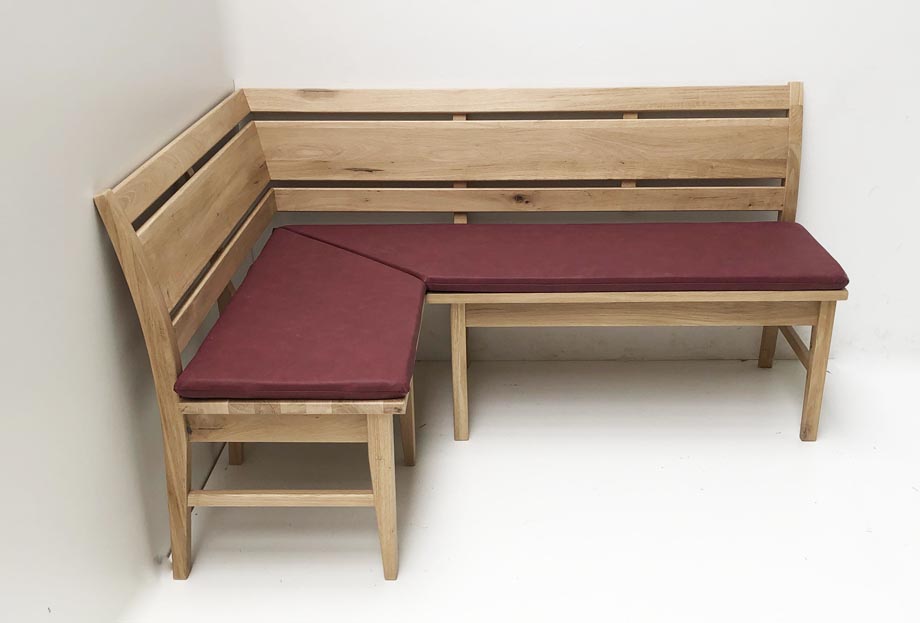 Eckbank Iseo Sondermaß 115/160 cm, Wildeiche lackiert, Polster genäht, Dust 100 bordeaux
