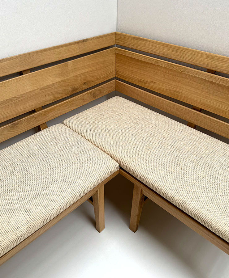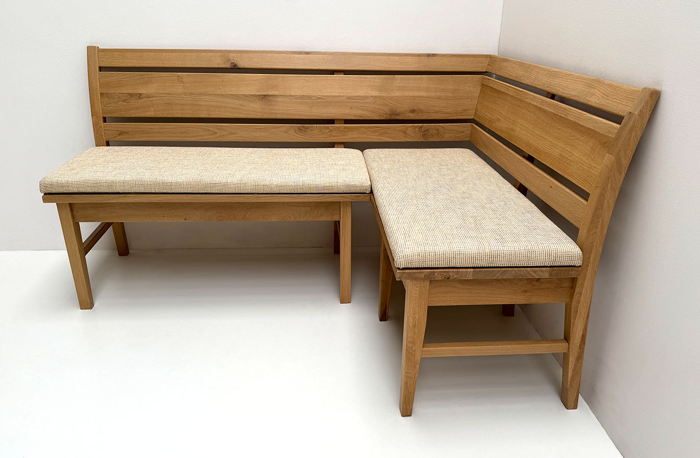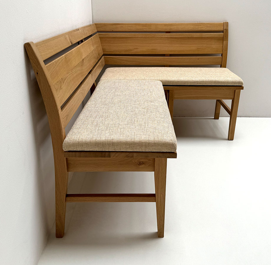 Eckbank Iseo Sondermaß 160/115 cm, Wildeiche lackiert, Polsterplatte Natura 802 beige