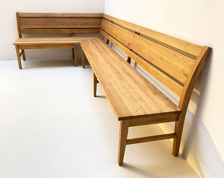 Landhausmöbel Eckbank Iseo, Schenkelmaß , Stellmaß A>160/280 cm, Rücken mit zusätzlicher Wange, Alles Wildeiche geölt