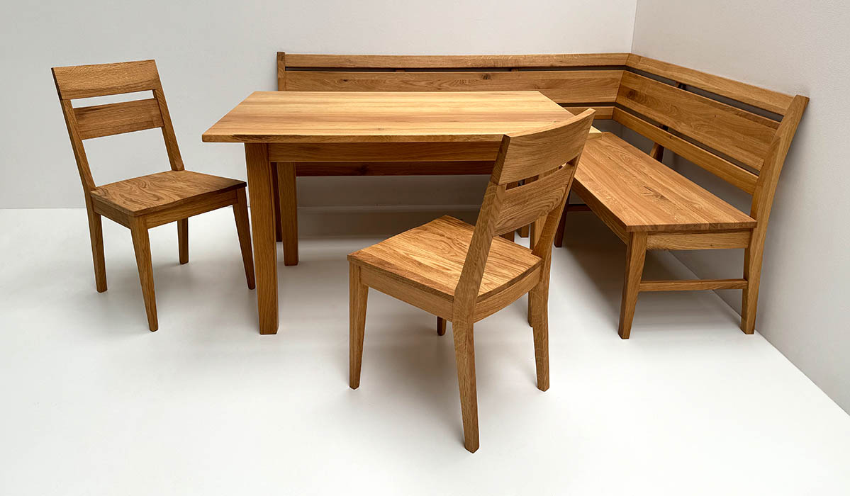Eckbankgruppe Iseo Wildeiche geölt, Bank 190/150 cm, Tisch 85/125 cm, 2 Stühle Filippa-M