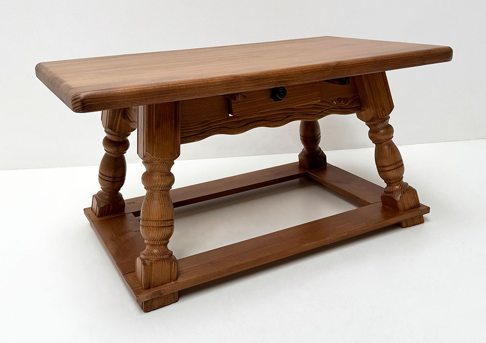 Jogl-Couchtisch 4520 100/80 cm, Fichteplatte Höhe 50 cm mit Fußrahmen, mit Schubladen