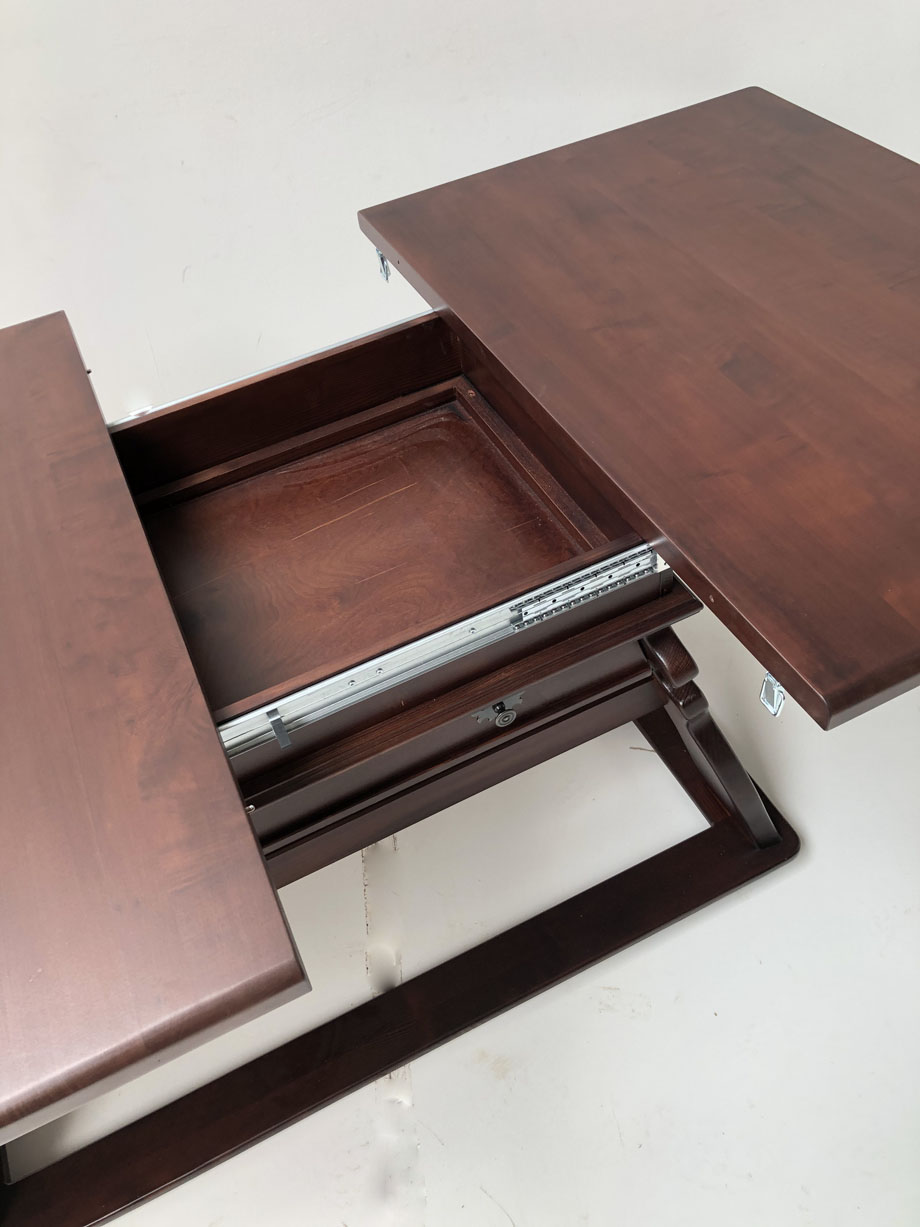 Gestell Fichte und Platte Ahorn Adler 12811 Rotbraun gebeizt und lackiert.