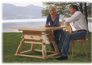 mit Schub, Alles in Fichte massiv, Rosner Hartwachs, mit Ahornplatte gegen Aufpreis