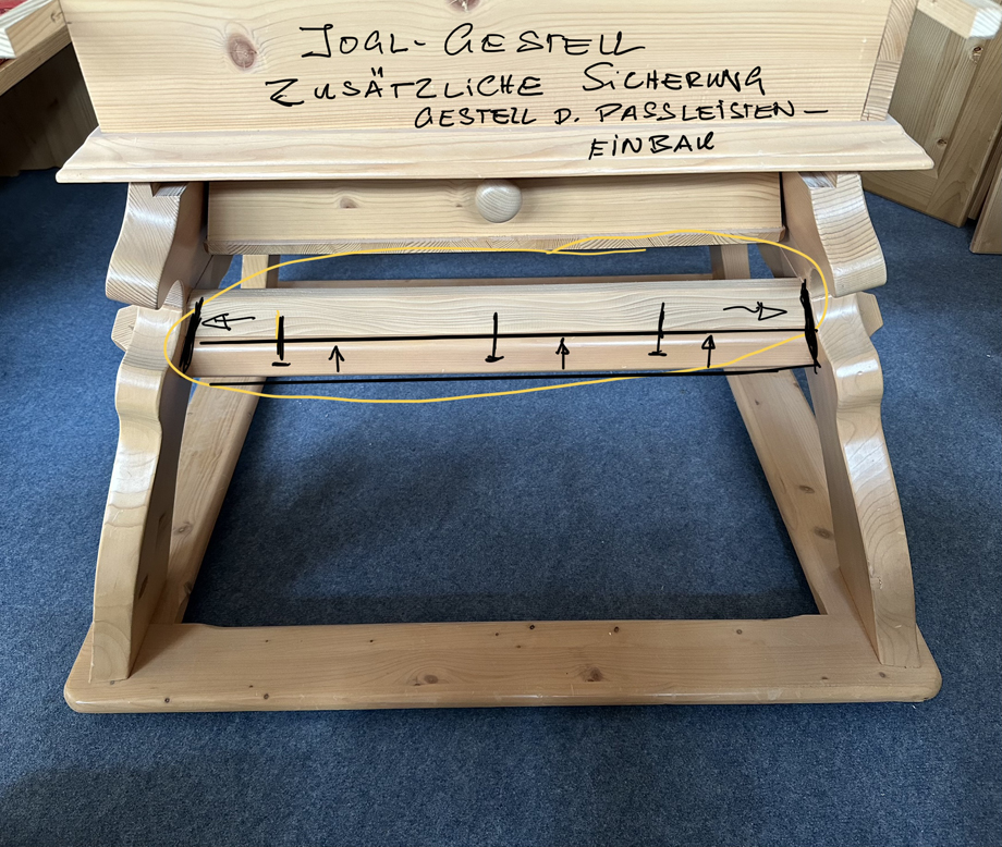 Die dadurch formschlüssige Verbindung sichert das Gestell gegen seitliche Bewegung