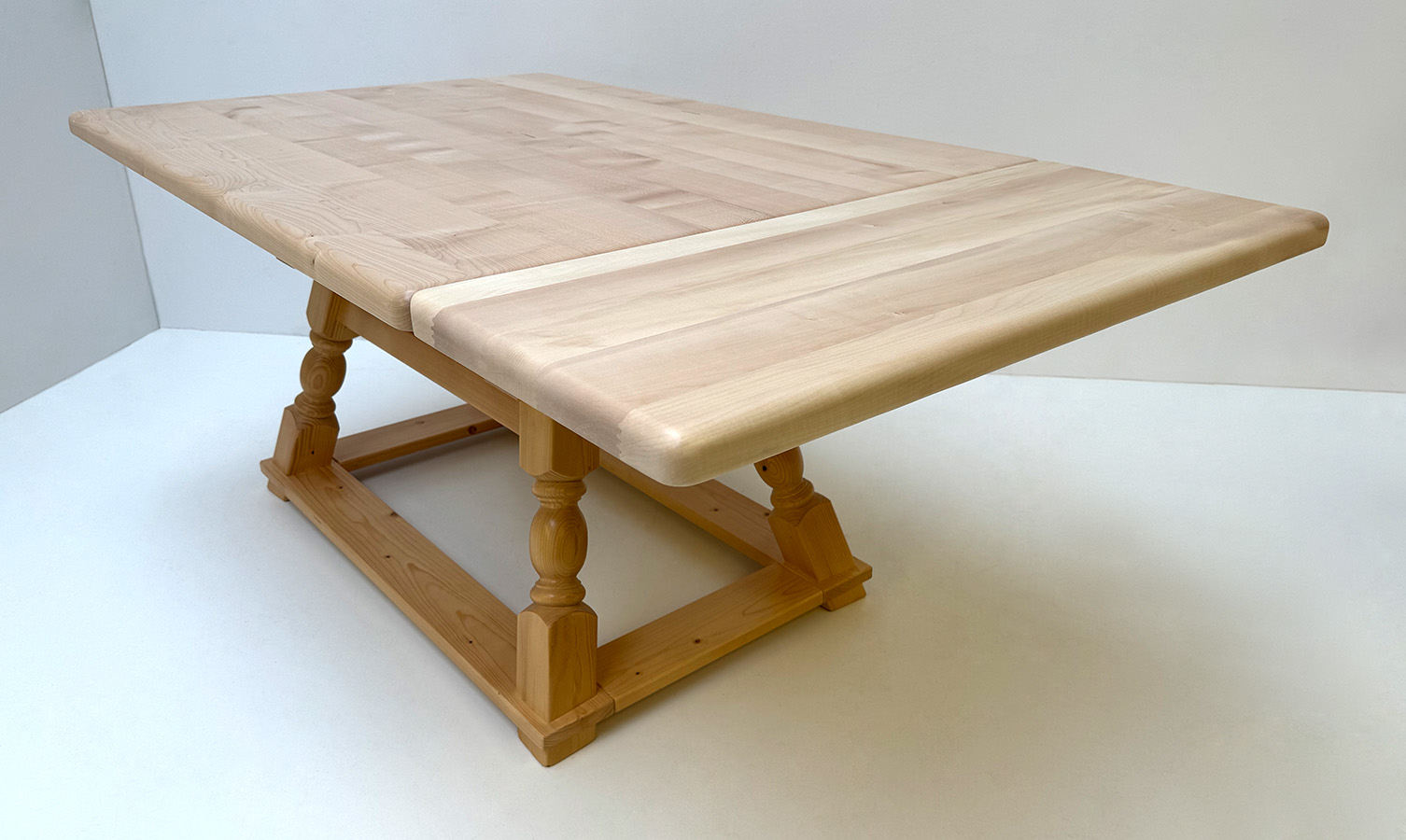 Landhausmöbel Jogltisch Lindau 100/140 cm Ahorn, inkl. Ansteckplatte 40 cm, Alu- Anstecksystem
