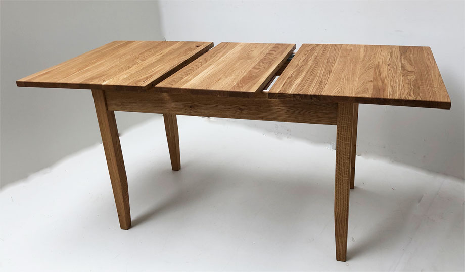 1 Vierfußtisch 120 (160) x 75 cm,Tischauszug mit Einlegeplatte 40 cm,  2 Stühle,