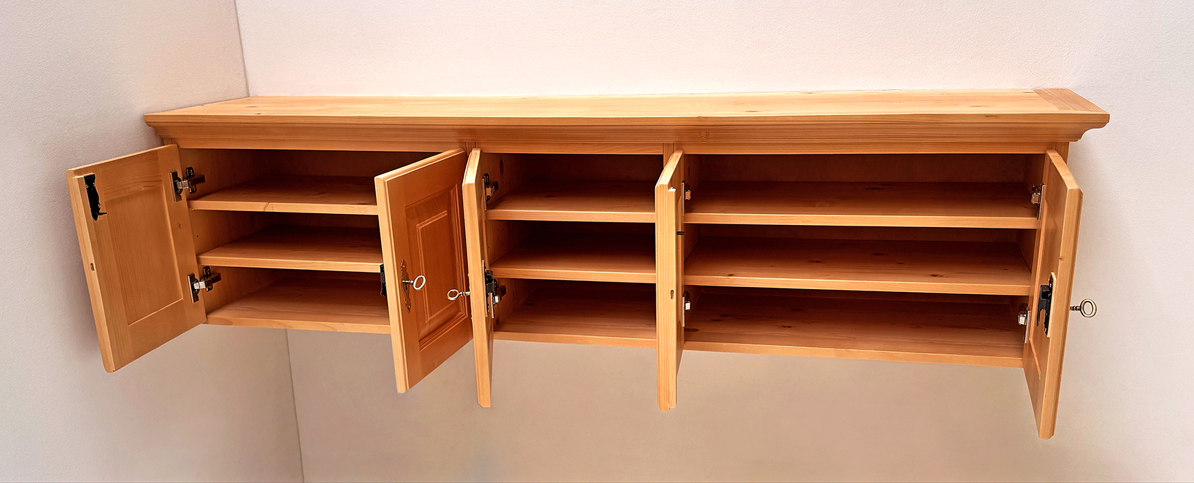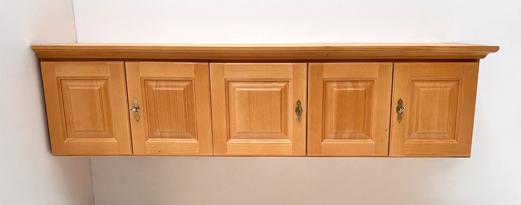 Wandhängeschrank, mit Kranz, Abschluß rechts, mit 5 Türen